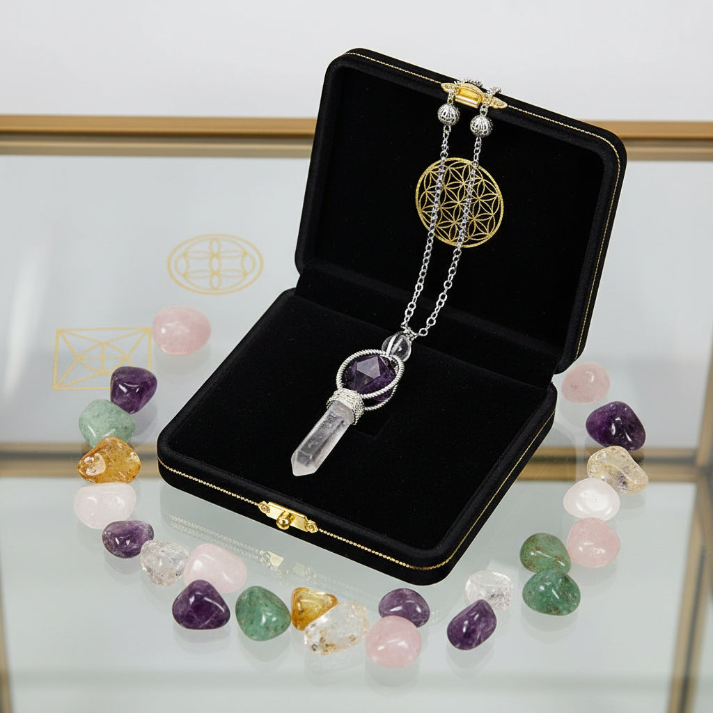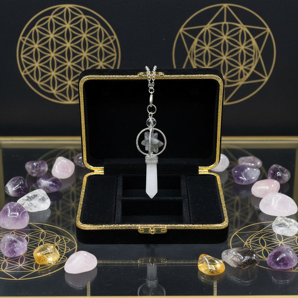 Elevate your divination practice. This isn't just a pendulum—it's a sacred tool that combines ancient wisdom, sacred geometry, and crystal energy into one extraordinary piece. Whether you're seeking guidance, activating your merkaba, or simply appreciating the beauty of sacred design, this pendulum will become a treasured part of your spiritual journey.