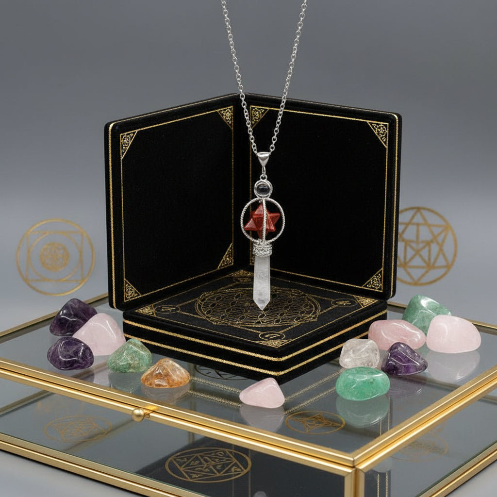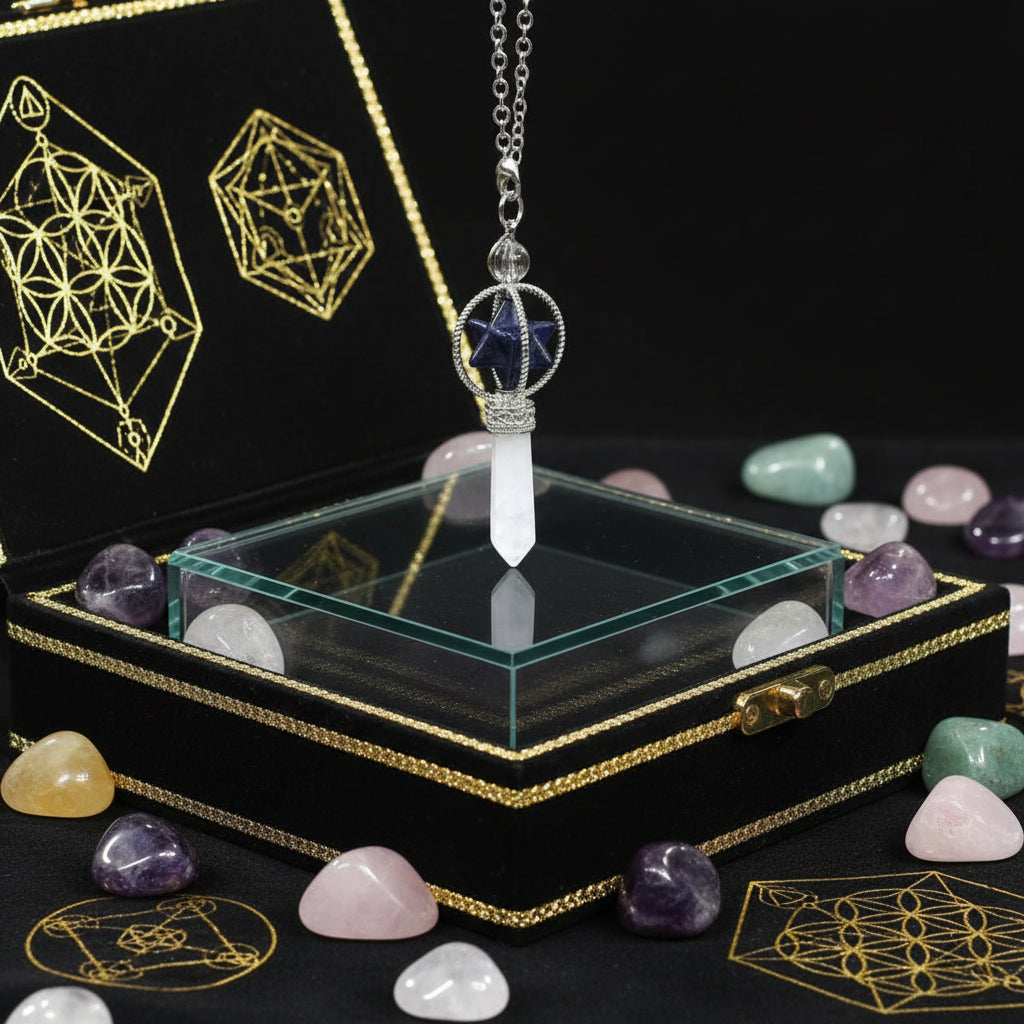 Merkaba Crystal Pendulum - Sacred Geometry Divination Tool with Caged Design