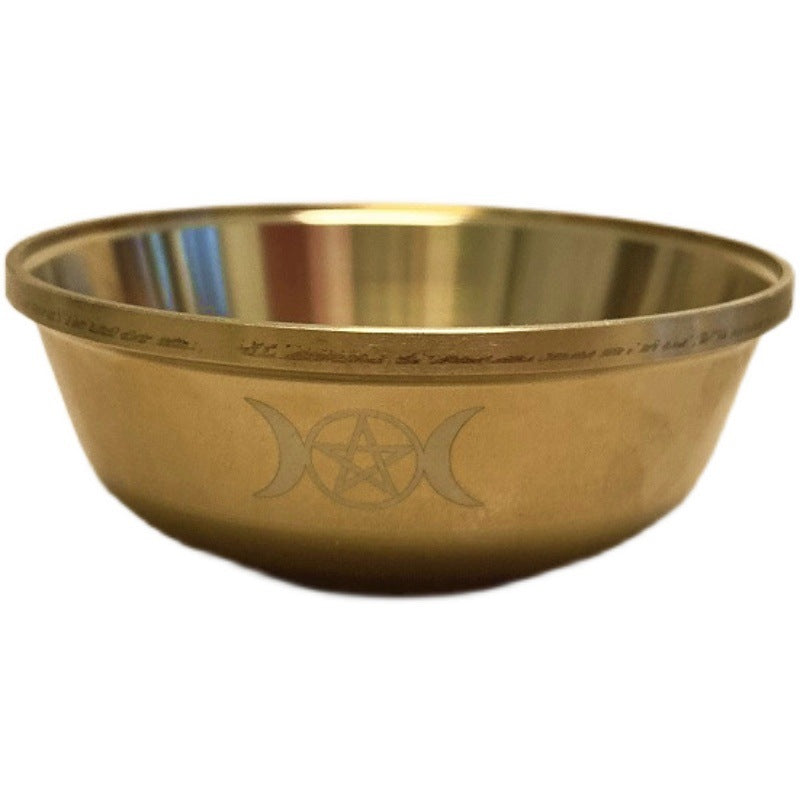 Sacred Altar Bowl Adorned with Triple Moon Goddess & Pentacle Symbols