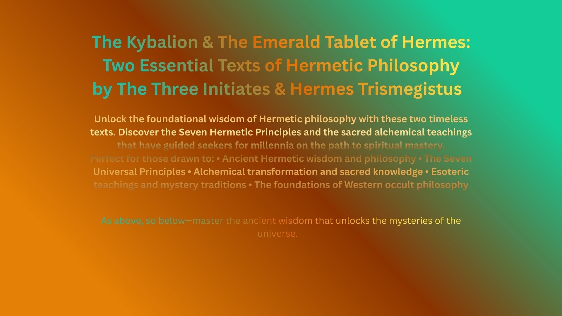 The Emerald Tablet of Hermes is a short, ancient text attributed to Hermes Trismegistus himself. Unlike The Kybalion, which aims to provide some explanation and instruction, the brief Emerald Tablet has been puzzling and fascinating scholars for over 1,000 years.